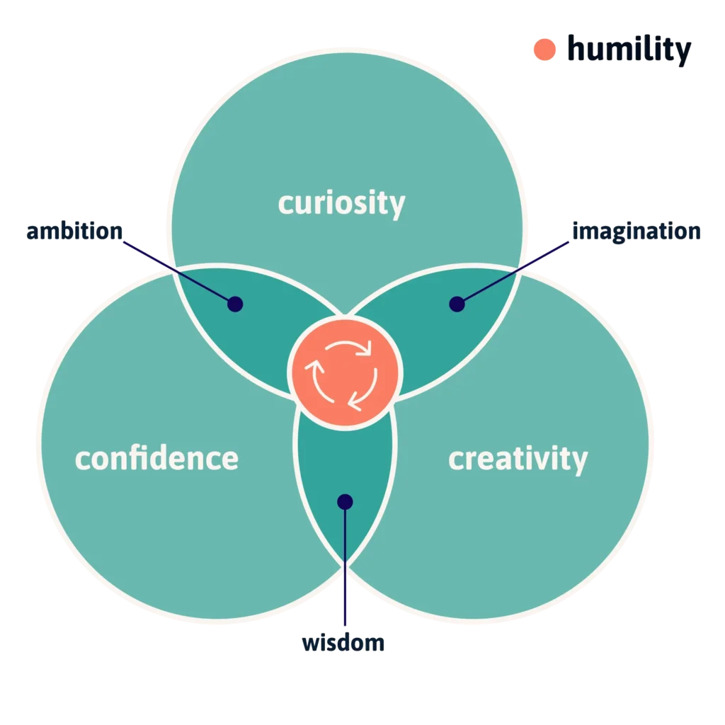 These elements form a virtuous cycle where humility keeps the ego in check, curiosity expands the knowledge base, and creativity turns insight into impact—fueling self confidence. When supported in the right work context, this cycle drives both personal growth and better design outcomes.